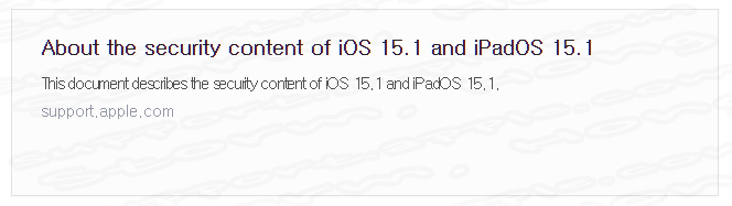 * 업데이트 진행 일시 - > iOS 15.1 (2021년 10월 25일 (EDT), iPadOS 15.1 (2021년 10월 25일 (EDT)