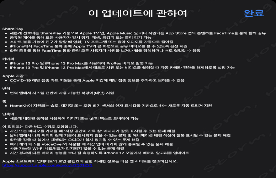 [ iOS 15.1 및 iPadOS 15.1 업데이트 내용 ]