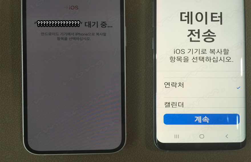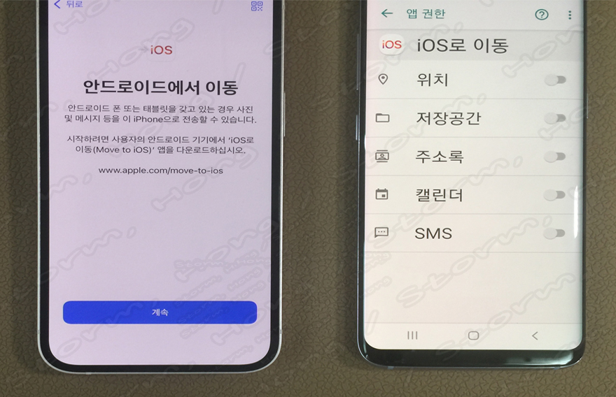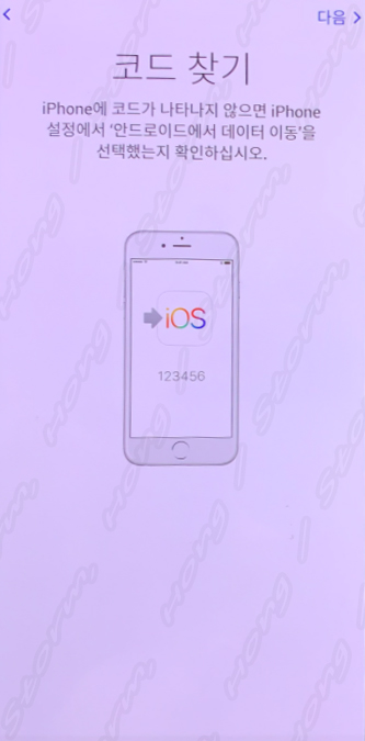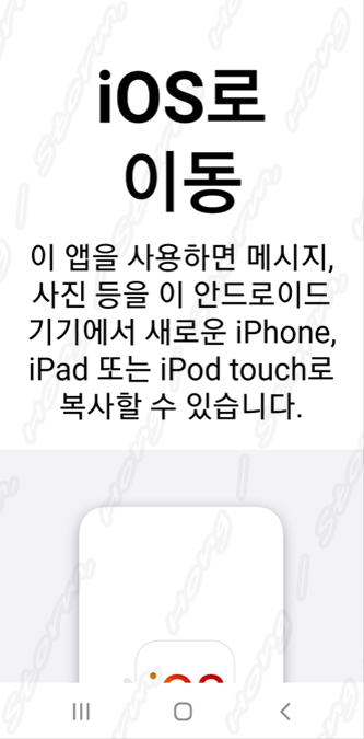20. 다음을 누르면 iOS 이동이라는 화면이 나오고 전송이 시작됩니다.