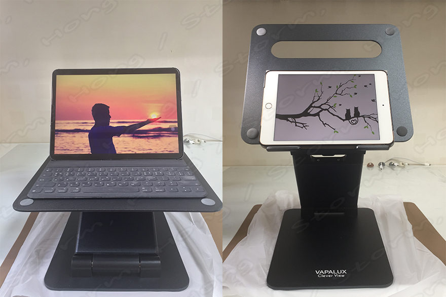 ↑VAPLUX Clever View CE-02 ELV에 거치한 사진 (왼쪽) : 아이패드 11인치, (오른쪽) 아이패드 미니 6세대