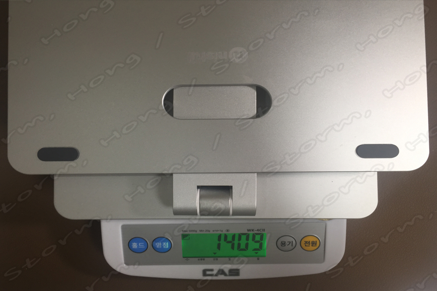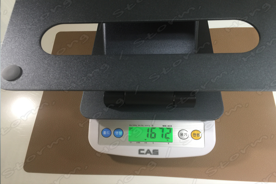 제품의 무게는 1.672Kg (1672g) 으로 안정성 있는 지지가 가능하도록 되어 있어 제품이 잘 거치될 수 있도록 도와주는 역할을 합니다.