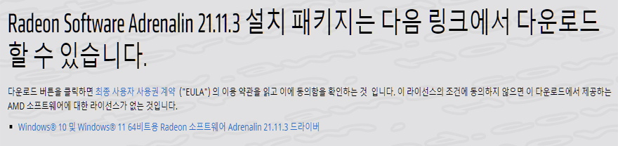 MS Window 10 및 Windows 11 64bit Radeon 소프트웨어 Adrenalin 21.11.3 드라이버 다운