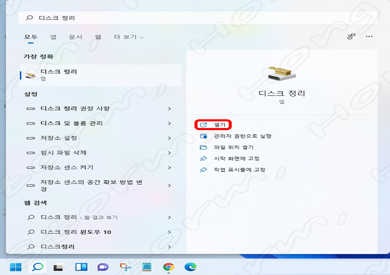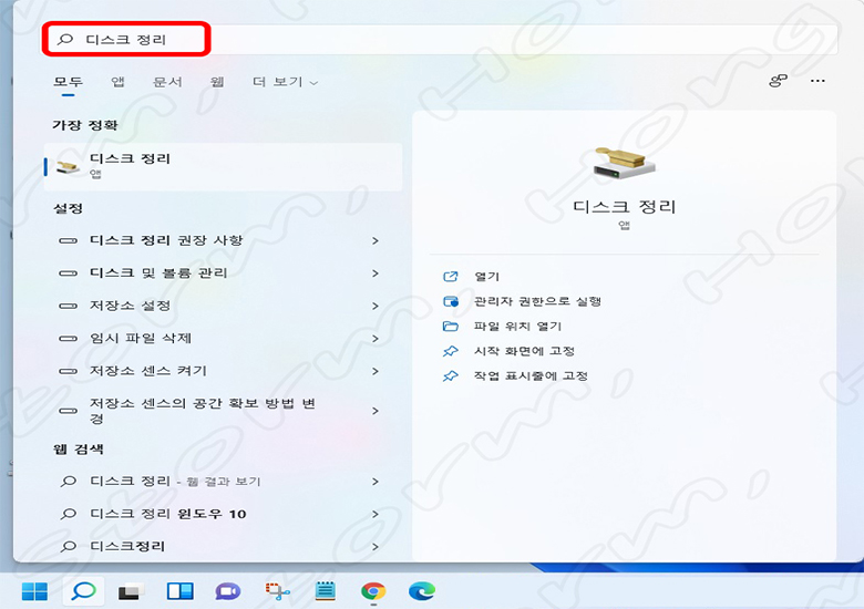 2) 아래 사진과 같이 '디스크 정리' 를 적어 줍니다.