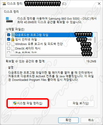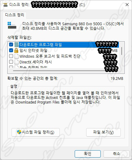 1. 디스크 정리를 이용하여 임시 파일 지우기