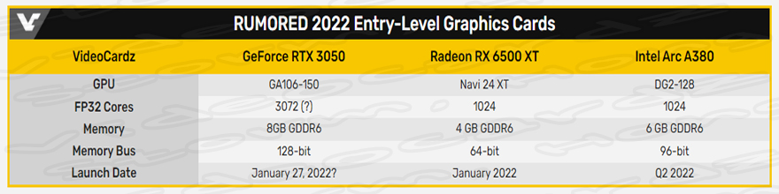 이러한 예상, 예측, 루머, 소문의 정보에 의하면 NVIDIA GeForce RTX 3050은 내년에 출시될 것으로 예상, 예측, 루머 소문으로 알려진 AMD Navi 24 (Radeon RX 6500 / Radeon RX 6400) 및 intel Alchemist DG2-128(ARC A380) 그래픽 카드와 경쟁하게 될 것으로 보입니다.