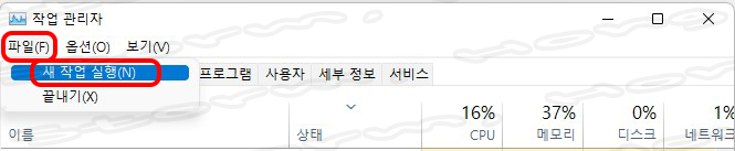 2. 작업 관리자를 이용하여 실행하는 방법