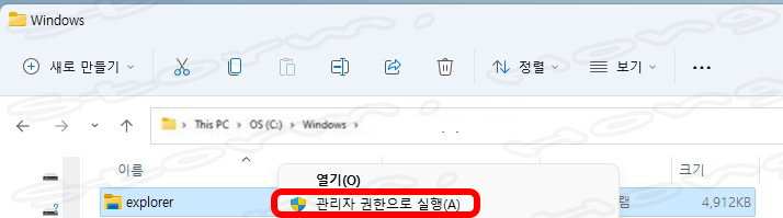 Windows 11 시스템에서 파일 탐색기를 관리자 권한으로 실행하는 방법은?