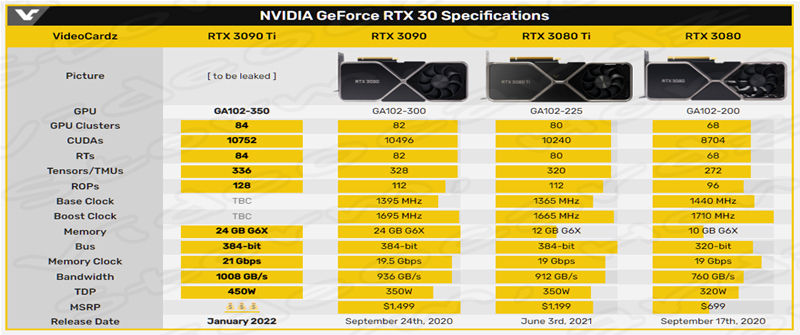 [ NVIDIA GeForce RTX 3090 Ti 그래픽 카드의 예상, 예측, 루머, 소문의 사양 ]