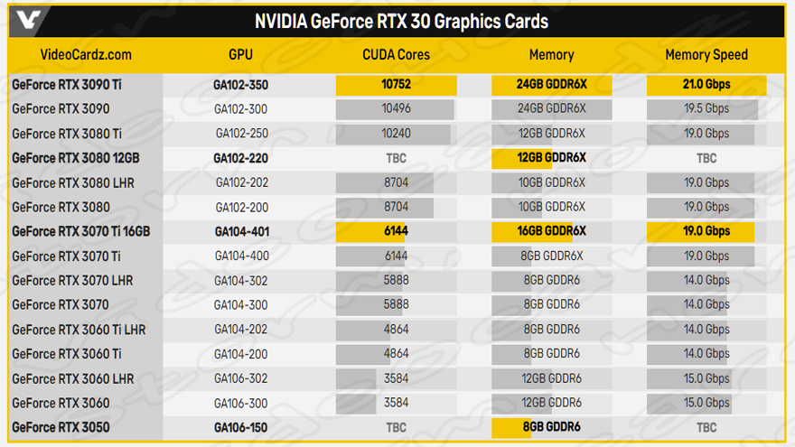 [ NVIDIA GeForce RTX 3070 Ti 16GB 그래픽 카드의 예상, 예측, 루머, 소문의 사양 ]