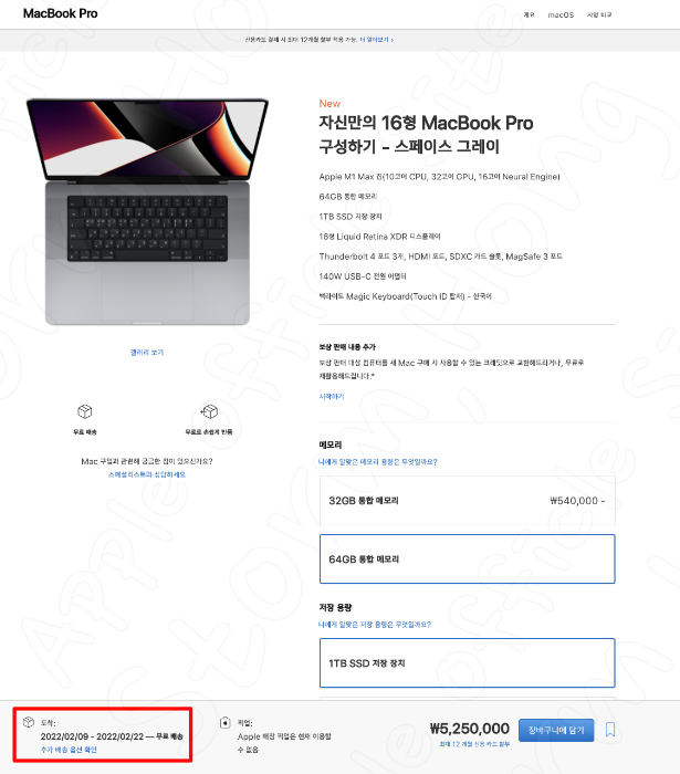 또한 M1 Max 도 비교군 Razer Blade 15 Advanced (RZ09-0409CE53) 제품 대비 적은 전력을 소비하면서도 비슷한 퍼포먼스 이상의 성능으로, 많은 이가 관심이 있던 제품이기도 합니다. 그를 앞서 언급했듯 M1 Max 제품을 탑재한 64GB 제품은 현재 구매를 하면 2022년 2월까지 기다려야 하는 상황에 놓이게 되었습니다.