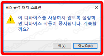 * 중요한 점은 터치 가능한 제품이 있는 경우에만 위 기능이 활성화 및 비활성화가 가능하며, 일부 제품을 연결하였다 제거를 한 경우에도 레지스트리가 엉켜 HID 호환 터치 스크린이 활성화되어 있는 경우가 있을 수 있습니다. 이때는 엉뚱하게 터치 관련 오작동이 일어날 수 있기 때문에 이 기능을 비활성화시켜주는 것이 중요합니다.
