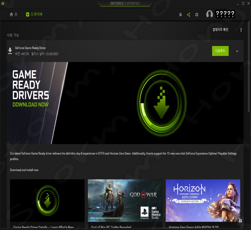 최신 NVIDIA GeForce Driver 497.29 는 새로운 기능과 함께 Sony Interractiv Entertainment 에서 만든 새로운 출시가 예정인 Horizon Zero Dawn 게임의 최신 버전을 플레이하는 이용자들에게 많은 개선이 이루어진 버전입니다. 이에 DLSS 활성화를 통해 성능을 50% 까지 향상할 수 있습니다. 이외에도 10 Chambers Collective 에서 개발한 1인칭 슈팅 게임 GTFO의 성능 향상도 있는 것으로 알려졌습니다.