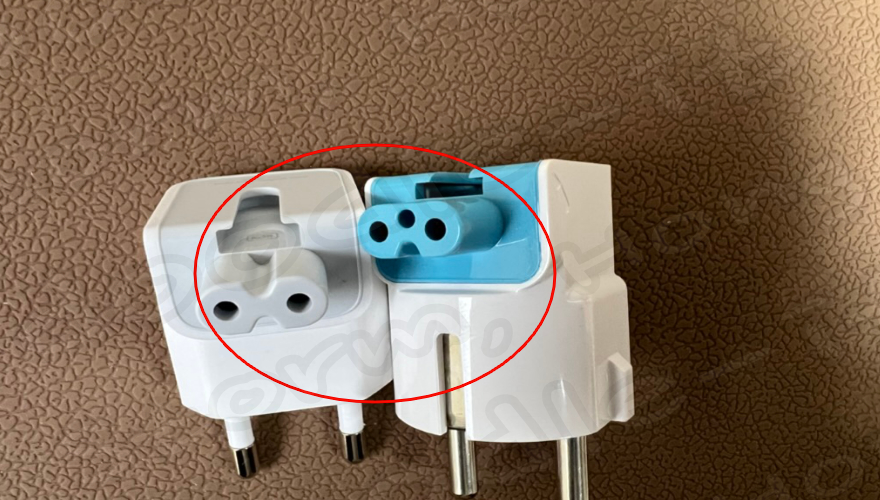 6. 두들 접지 플러그를 연결한 사진과 Apple에서 제공한 접지 플러그를 연결한 비교 사진입니다.