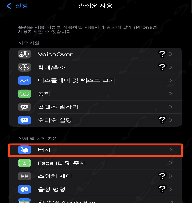 3. '터치' 를 선택합니다.