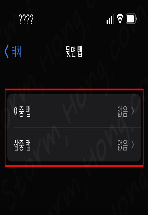 5. 이중 탭 또는 삼중 탭을 선택하여 Back Tap 선택창을 불러옵니다.