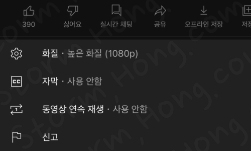 ↑ 동영상에서 3개의 점을 누른 다음 화질을 누른 부분입니다.