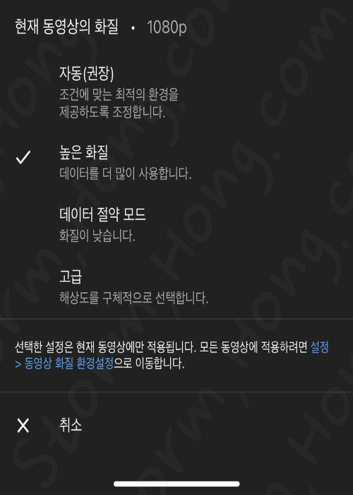 ↑ 동영상에서 3개의 점 -> 누른다음 화질 -> 고급을 누른 부분입니다. 고급을 누르면 화질을 임의대로 자신이 설정할 수 있습니다.