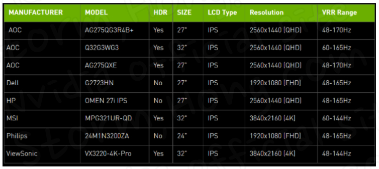 [ NVIDIA GeForce Game Ready 511.23 WHQL에 지원되는 디스플레이 ]