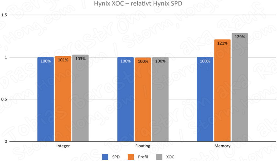 Tobias Bergström aka Rauf 는 메모리 성능을 결정하는 테스트 Geekbench 3 벤치마크를 사용했다고 알려졌으며 DDR4에 비해 메모리 점수가 상승했지만 게임과 같은 애플리케이션에서 가장 많은 형향을 미치는 성능이라고 이야기를 했습니다. 또한 삼성 (Samsung) 과 하이닉스 (Hynix) 제품은 마이크론 제품에 비해 최대 28% 의 메모리 성능을 보여주지만 성능 상승폭은 5 ~ 8%에 불과하다고 알렸습니다.