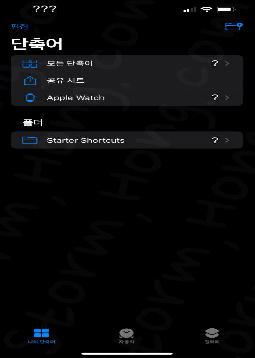 1. 다양한 방법으로 단축어 앱을 실행시켜 줍니다.
