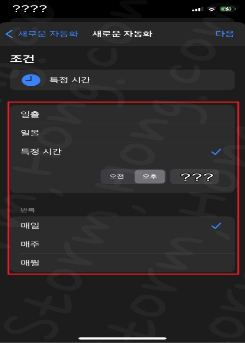7. '특정 시간'에 시간을 설정해 줄 수 있습니다.