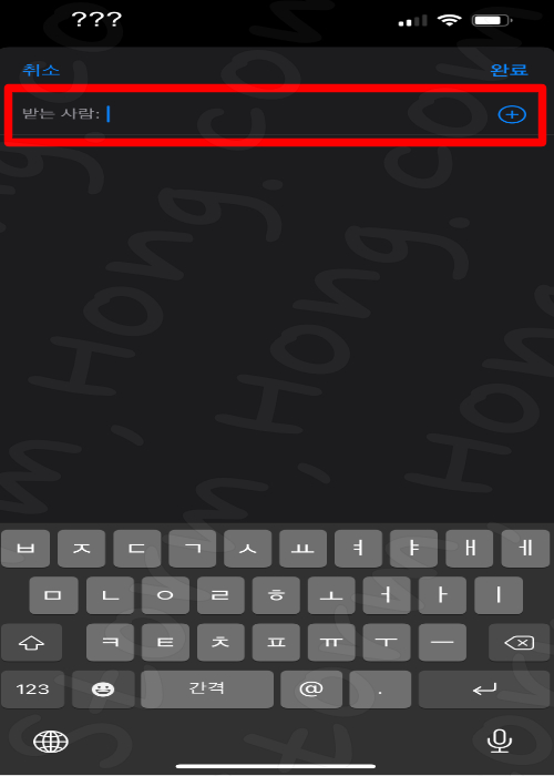 10. '받는 사람' 을 눌러 주면 ↓ 아래와 같은 화면이 나타납니다.