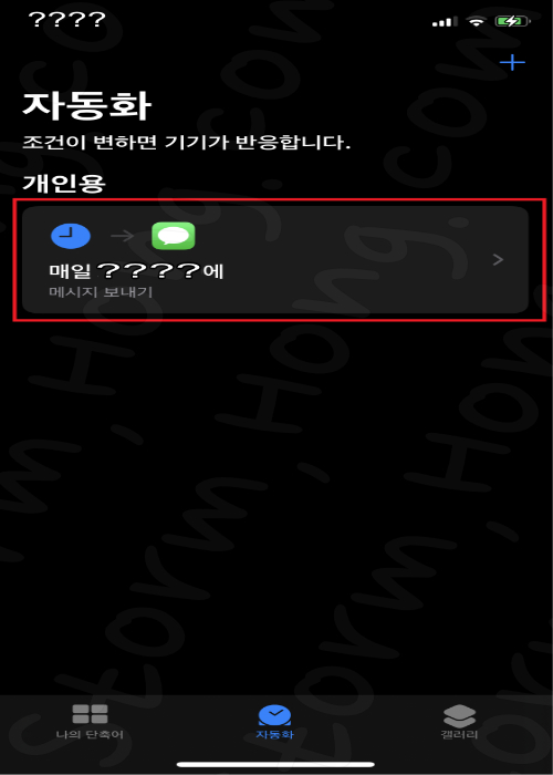 13. 이제 단축어 탭을 종료하시면 됩니다. 알람에서 '단축어 관련 알림 메시지 보기' 로 설정하신 분은 알람이 보이게 됩니다.