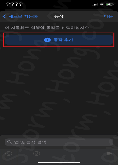 8. 다음을 눌러 '동작 추가' 를 눌러 줍니다.