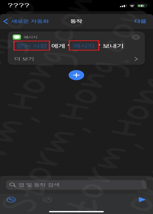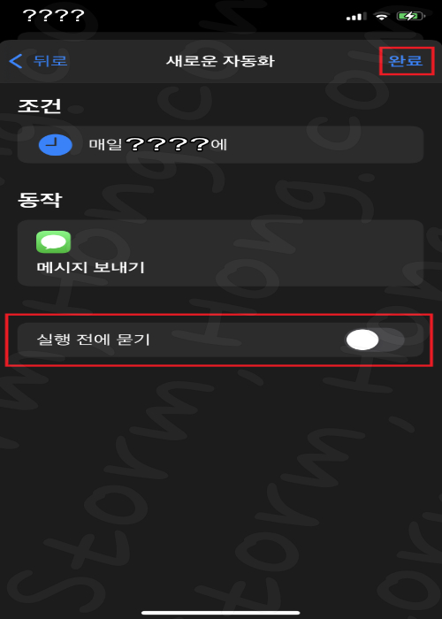 - '메시지를 보내기 전' 단축어 알림이 실행되며, 이때 다시 한번 진짜로 보낼지 여부를 선택할 수 있습니다. < 확인 / 취소>