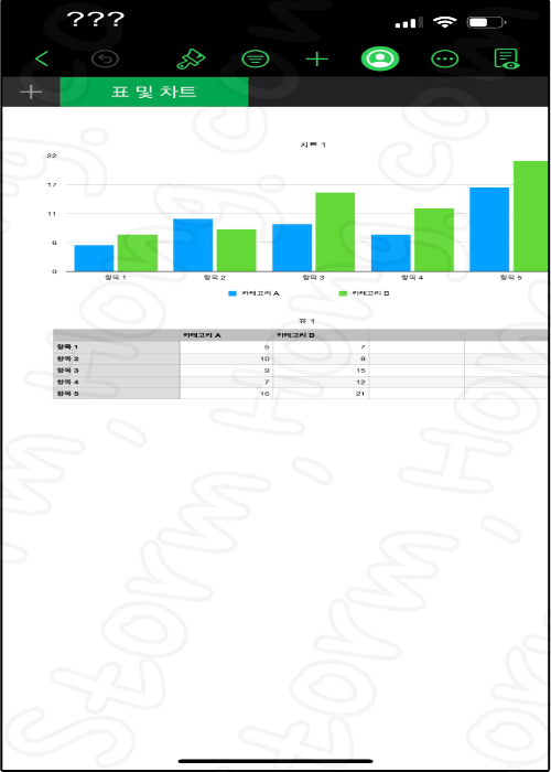 ↑ 값은 임의대로 미리 입력된 기본 템플릿이며, 자신에게 맞는 화면을 확인하여 표와 차트 등으로 만들어 주면 됩니다.