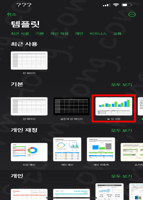 7. 아래와 같은 화면이 나오며 탬플릿을 선택할 수 있습니다.