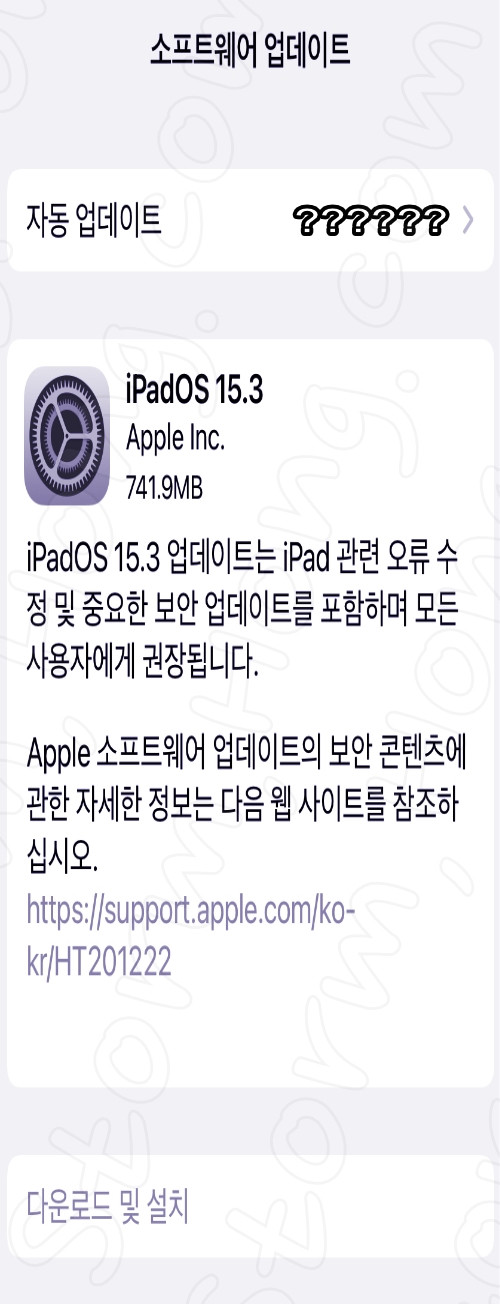 * iPadOS 15.2.1 이하의 업데이트가 안 되는 경우 새롭게 iPadOS 15.3 업데이트 시 길게 업데이트 내역이 한꺼번에 나오는 더보기 업데이트 목록이 보일 수 있습니다. 'iPadOS 14.8 에서 15로 넘어가지 않으신 분들은 용량이 약 2.66 GB 의 용량이 업데이트' 를 해야 하는 현상이 생깁니다.