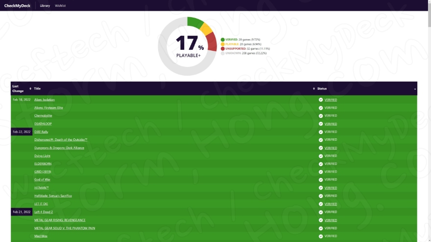 현재 공식적으로 호환성 테스트를 받을 때까지 Steam Deck 에서 실행을 하여 스스로 호환성에 대해 검증을 받아야 하는 것으로 알려졌습니다. 이러한 내용에서 CheckMyDeck을 사용하여 사용자가 추가한 위시리스트에서 PC용 게임을 사용할 수 있도록 호환되는지 여부를 확인할 수 있다고 알려지고 있습니다.