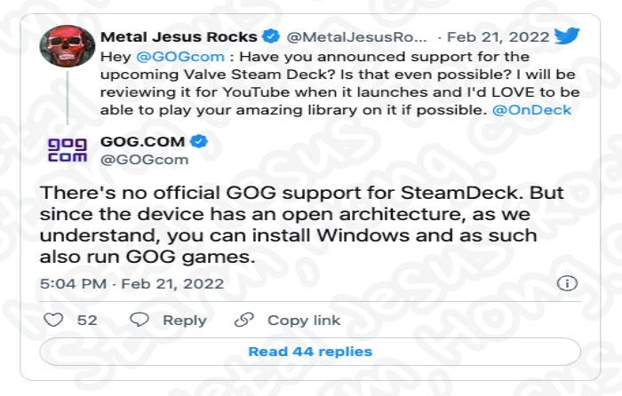 다른 Steam Deck 뉴스에서 GOG 는 현재 장치를 공식적으로 지원할 계획이 없다고 밝혔다고 알려지고 있습니다. 그들은 Steam Deck 사용자가 정말로 GOG 타이틀을 실행하고 싶다면 Windows를 설치하도록 권장했다고 알려졌습니다.