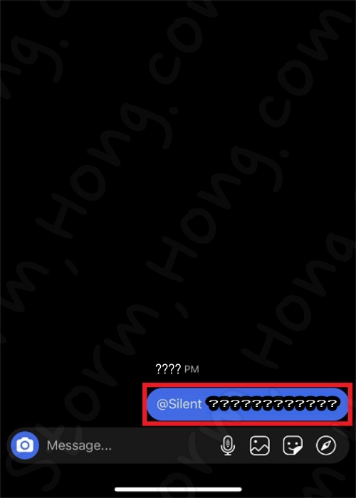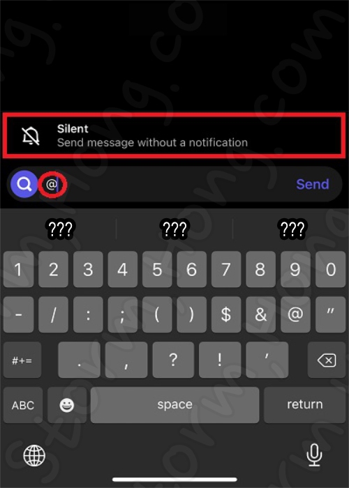 3. 대화가 열리면 텍스트 필드에 @Silent 를 입력하고 메시지를 입력하면 됩니다. @ 기호 를 넣으면 옵션이 자동으로 나타나게 됩니다.