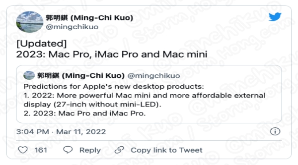 Ming-Chi Kuo 는 지난주 Apple Mac 라인업에 대한 예상, 예측, 루머, 소문의 정보를 알렸습니다. Apple이 올해 미니 LED 를 탑재하지 않은 새로운 외부 디스플레이와 내부가 업그레이드된 Mac mini 를 출시할 계획이라는 예상, 예측, 루머, 소문의 정보를 밝혔습니다. 그러면서 맞춤형 Apple Silicon 으로 iMac Pro 및 Mac Pro 를 출시하기 위한 준비를 하고 있다는 예상, 예측, 루머, 소문의 정보를 공유하면서 2023년에 있을 것이라고 알렸습니다.