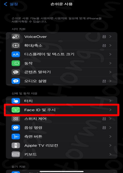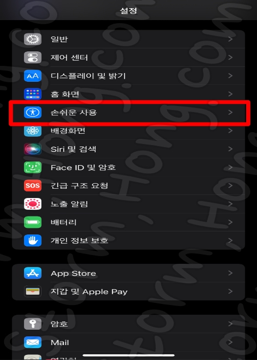 2. '접근성' 을 탭 합니다.