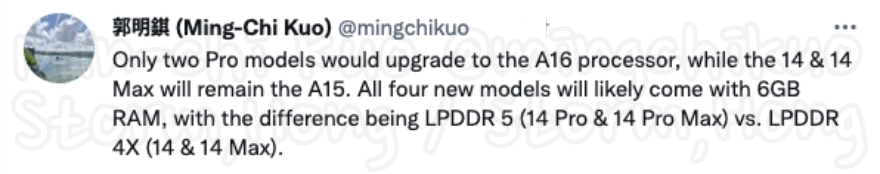 [ iPhone 14 모델 6GB RAM 이 탑재되며 , iPhone 14 Pro Series A16 Boinic 탑재될까? ]