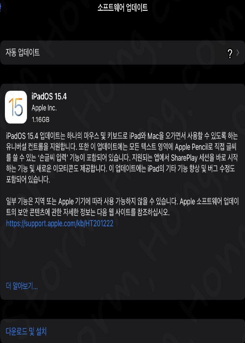 * iPadOS 15.4 이하의 업데이트가 안 되어 있는 경우 새롭게 iPadOS 15.4 업데이트 시 길게 업데이트 내역이 한꺼번에 나오는 더보기 업데이트 목록이 보일 수 있습니다. 'iPadOS 14.8 에서 15로 넘어가지 않으신 분들은 이번 업데이트를 포함하여 용량이 약 2.82 GB 의 용량이 업데이트' 를 해야 합니다.