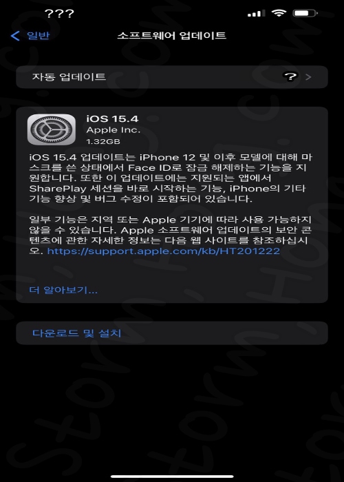 * 업데이트 iOS 15.4 가능 모델 : iPhone 6s 이상의 모델