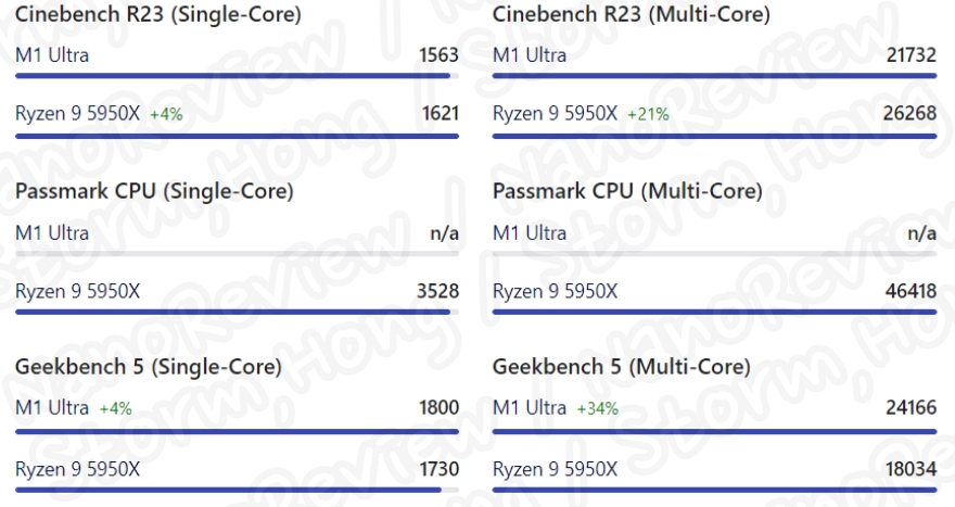 * M1 Ultra SOC 는 Intel 및 AMD 데스크탑 CPU 에 대한 벤치마크에 대한 정보
