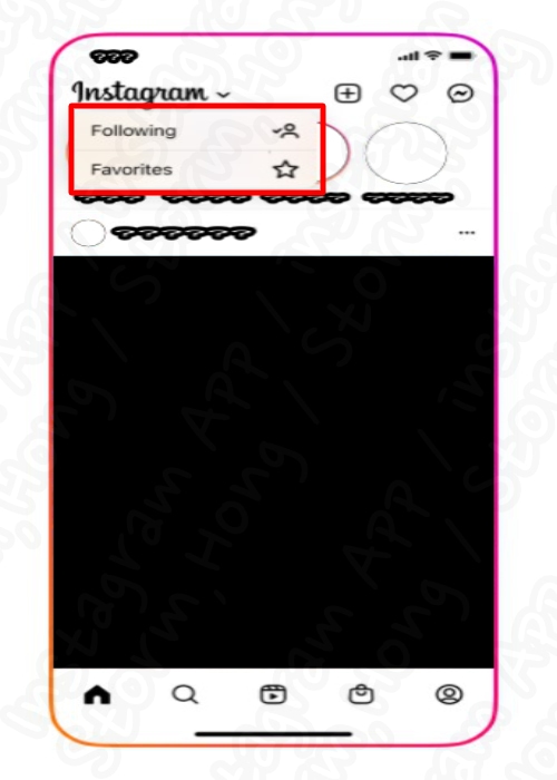 Instagram (인스타그램) 에서 오른쪽 상단 모서리에 있는 로고를 탭하여 두 가지 옵션 중 하나를 선택할 수 있습니다. 다음 옵션은 사용자가 팔로우하는 모든 instagram 계정을 표시하고 즐겨찾기 옵션을 사용하면 최대 50개의 계정을 선택할 수 있습니다.
