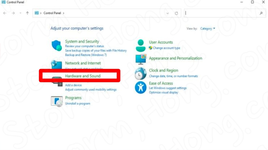 3. 하드웨어 및 소리를 선택합니다.