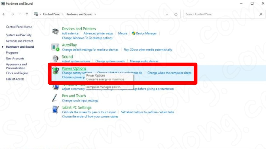 4. 전원 옵션을 선택합니다.