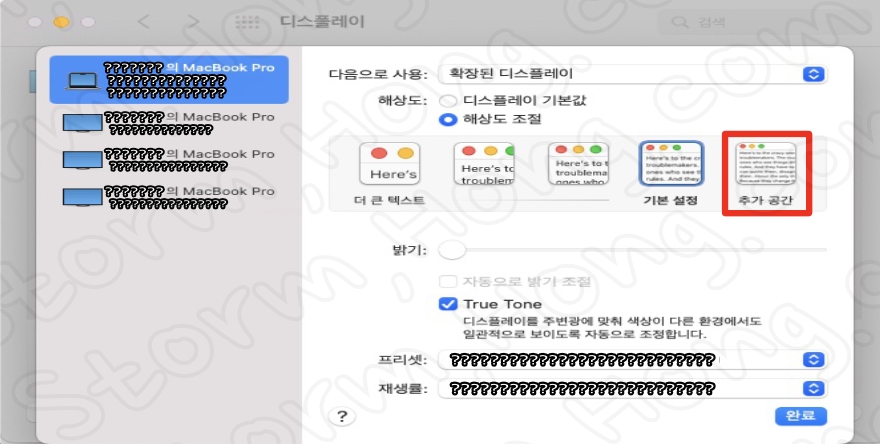 2)) 여러 디스플레이중에 MacBook 디스플레이를 선택해 줍니다.