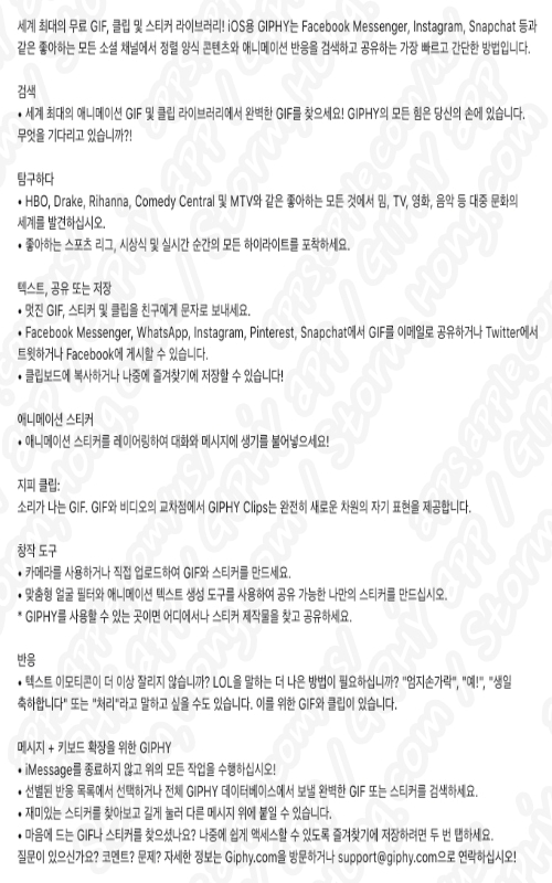 만일 사용하시는 GIF 변환 앱이 있거나 하실 경우에는 새롭게 다운을 받아서 사용을 하셔야 한다는 점입니다. Apple 의 iMassage 자체로 보낼 수 없는 점은 정말 아쉬운 부분입니다. GIPHY App 과 같은 제품을 이용해야 한다는 점입니다. 손쉽게 보낼 수 있도록 추가되었으면 어땠을까? 라는 생각을 해봅니다.