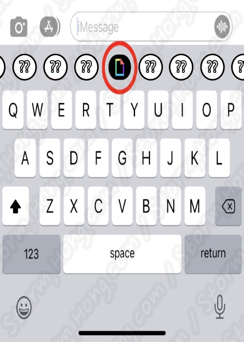4. 키보드 바로 위에 있는 여러 앱들이 표시됩니다. 이때, 아래와 같이 GIPHY 표시를 찾아 눌러 줍니다.