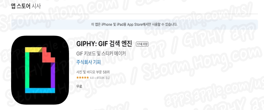 1. 먼저 GiF 기능을 지원하는 앱인 GIPHY 앱을 다운 받아 줍니다. 이 제품은 App Store 에서 받을 수 있습니다. 검색어를 GIPHY 를 검색하면 됩니다.