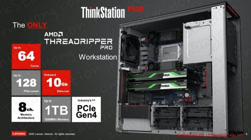 AMD는 최신 워크스테이션 프로세서에 대한 액세스 권한을 부여했지만 AMD는 또한 최신 Threadripper Pro 5000 칩으로 Lenovo ThinkStation P620 시스템을 복원했는 정보가 알려졌습니다.  또한 Lenovo와 AMD의 독점 계약을 통해 회사는 이번 달 출시와 함께 Threadripper Pro 5000 라인의 초기 공급을 받을 수 있는 것으로 알려졌으며, 다른 회사들은 아마도 2022년 하반기까지 공급을 볼 수 없을 것이라는 정보가 나왔습니다. 그러나 아직까지 이는 정확한 정인지 확인이 되지 않았다는 예상, 예측, 루머, 소문의 정보가 나왔습니다.