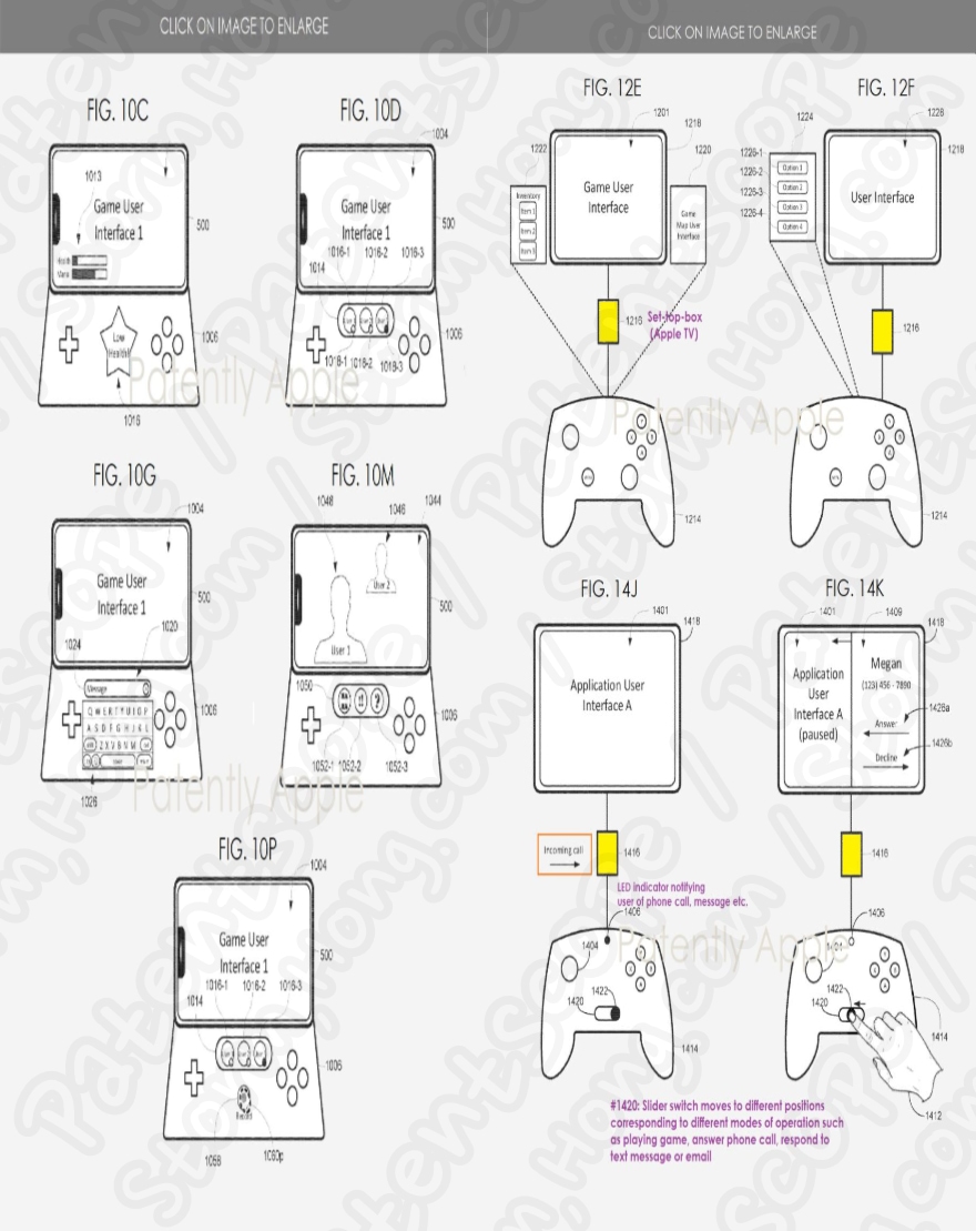 그러면서 세 번째, 스타일은 보다 전통적인 접근 방식을 사용하지만 디자인 특허가 아니기 때문에 실제 상용 제품은 크게 다를 수 있는 것으로 예상, 예측, 루머, 소문의 정보로 알려지고 있습니다. 그만큼이 컨트롤러는 슬라이드식 스위치 제어를 제공하면서 Apple TV와 함께 작동하여 사용자가 게임 모드, 메시징 모드 또는 전화 모드를 시작할 수 있다고 합니다.